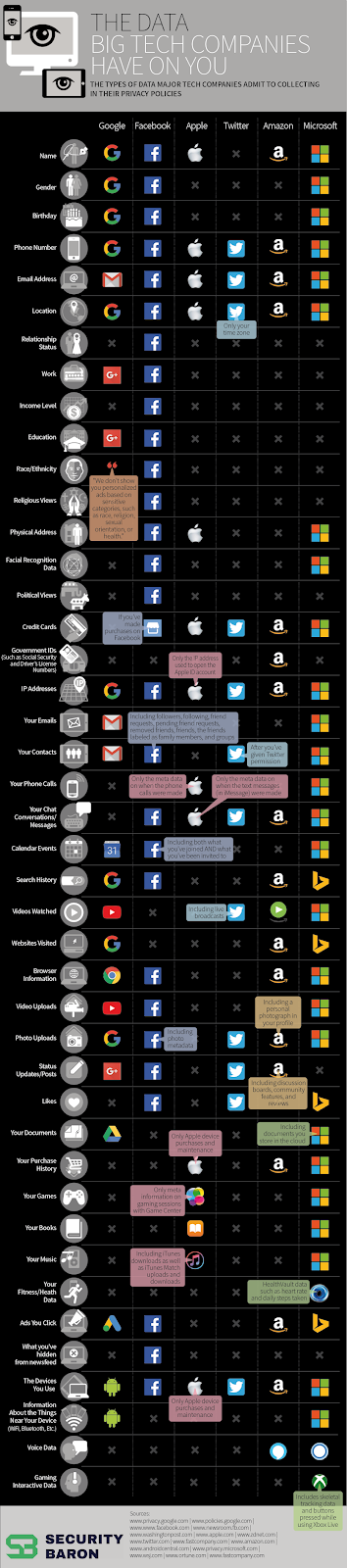Today’s infographic comes to us from Security Baron, and it compares and contrasts the data that big tech companies admit to collecting in their privacy policies.