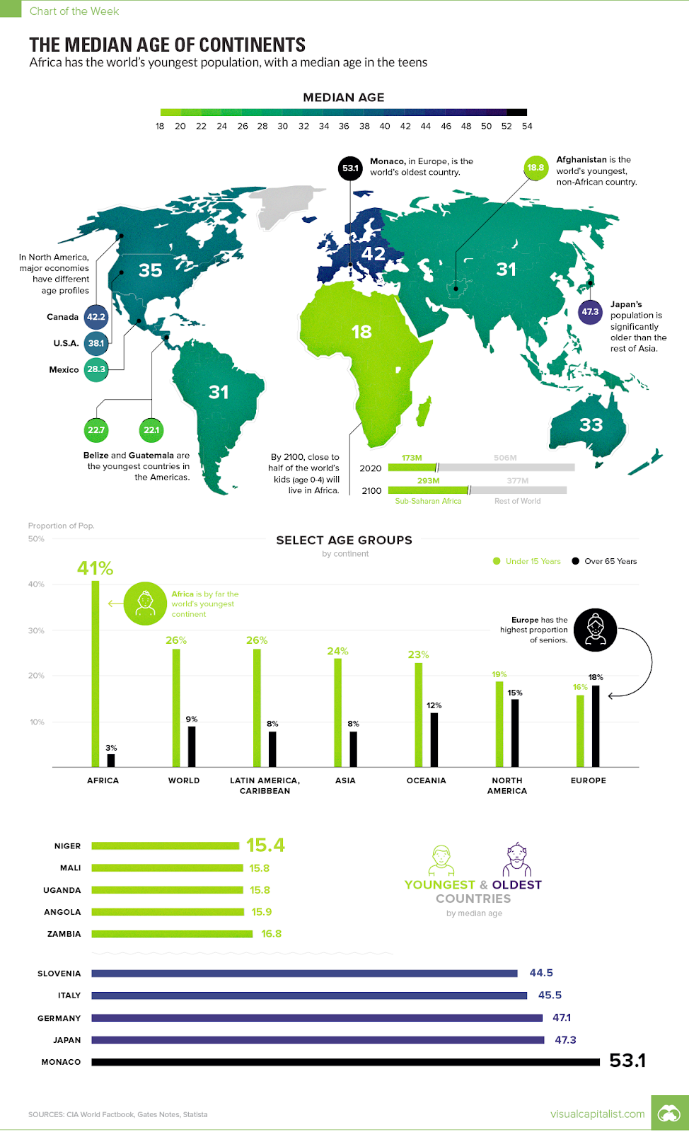 Today’s chart was inspired by the Gates’ letter, and it showcases the median age of each continent along with other pertinent data points.